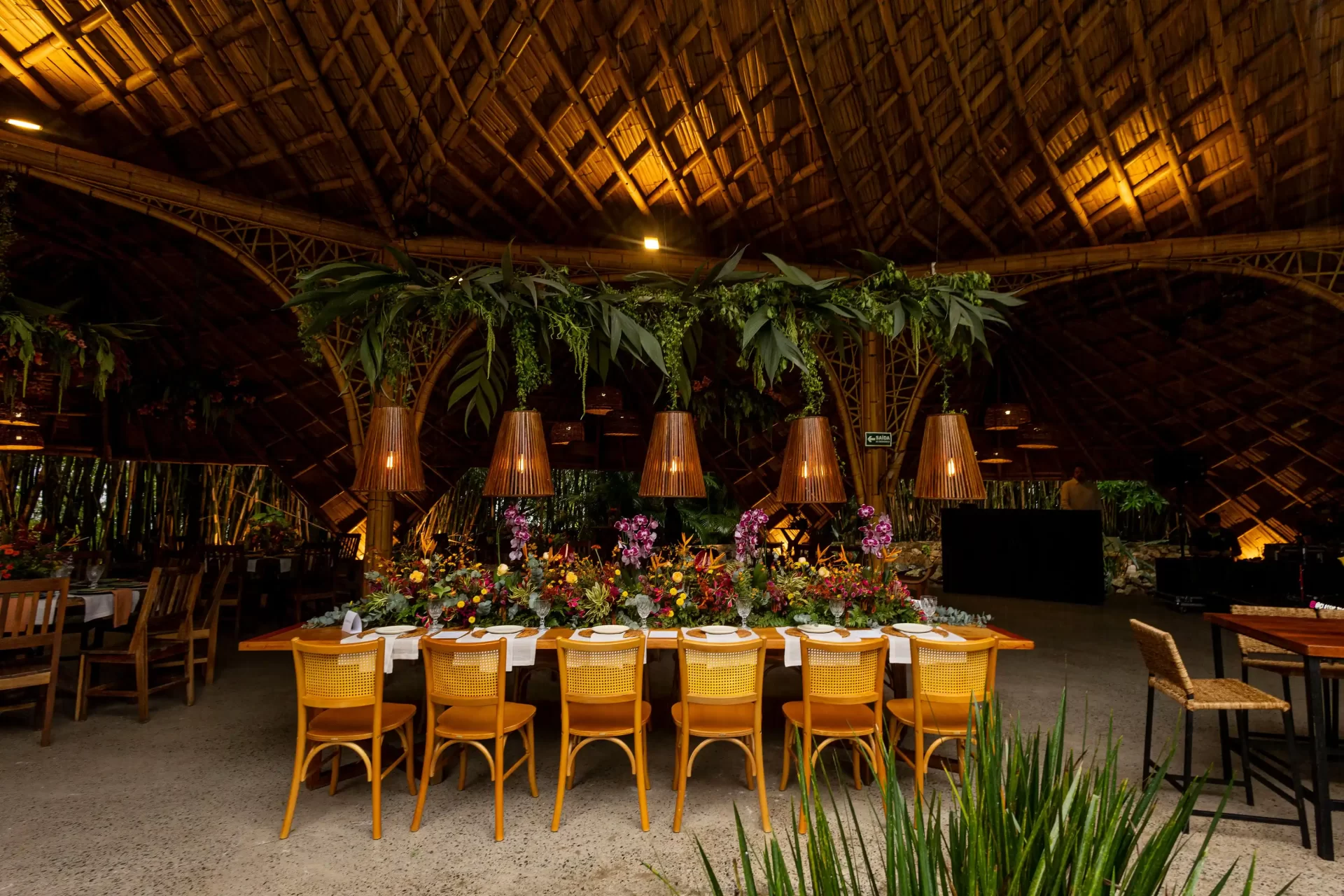 Desde o primeiro momento, os noivos participaram de cada detalhe com carinho, tornando tudo ainda mais especial. A decoração tropical, cheia de vida, refletiu perfeitamente a essência do casal: leve, alegre e inspiradora.